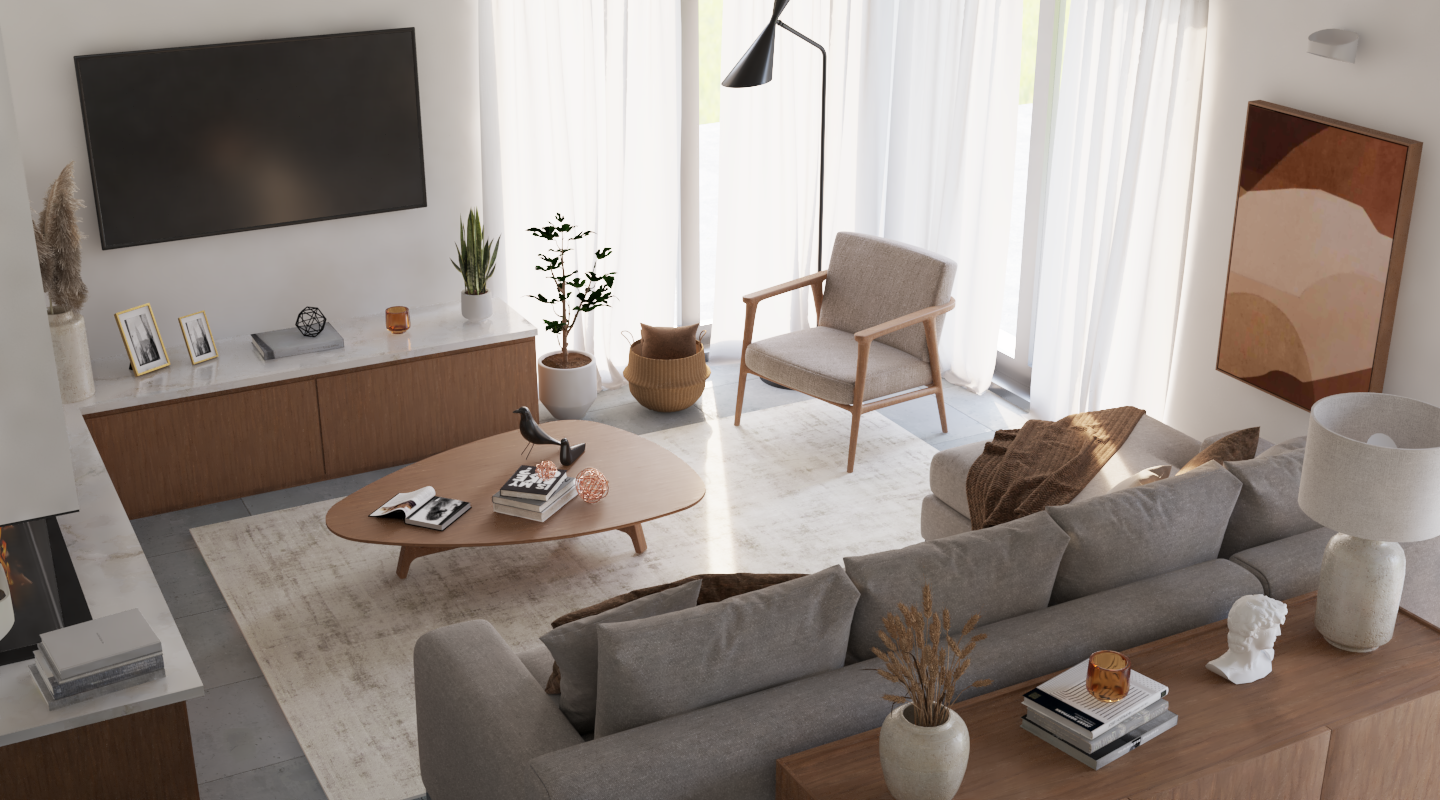 The spaces highlight a balance between functionality and sophistication, with a neutral color palette and natural elements that create a welcoming and elegant environment.