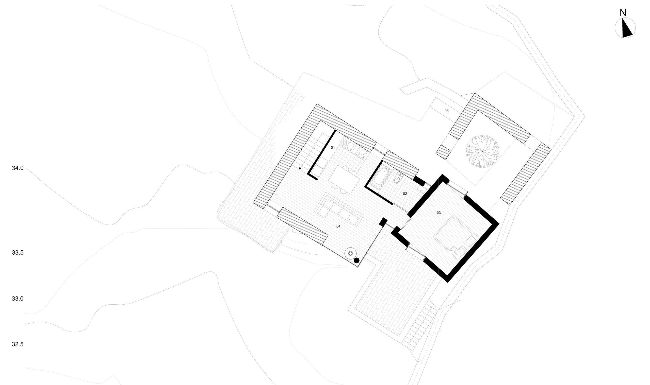 The second bedroom is situated on the second floor, and the strategic placement of the new wooden structure has created an inner patio, thoughtfully incorporating some of the original ruins into the design, adding character and uniqueness to the second bedroom.