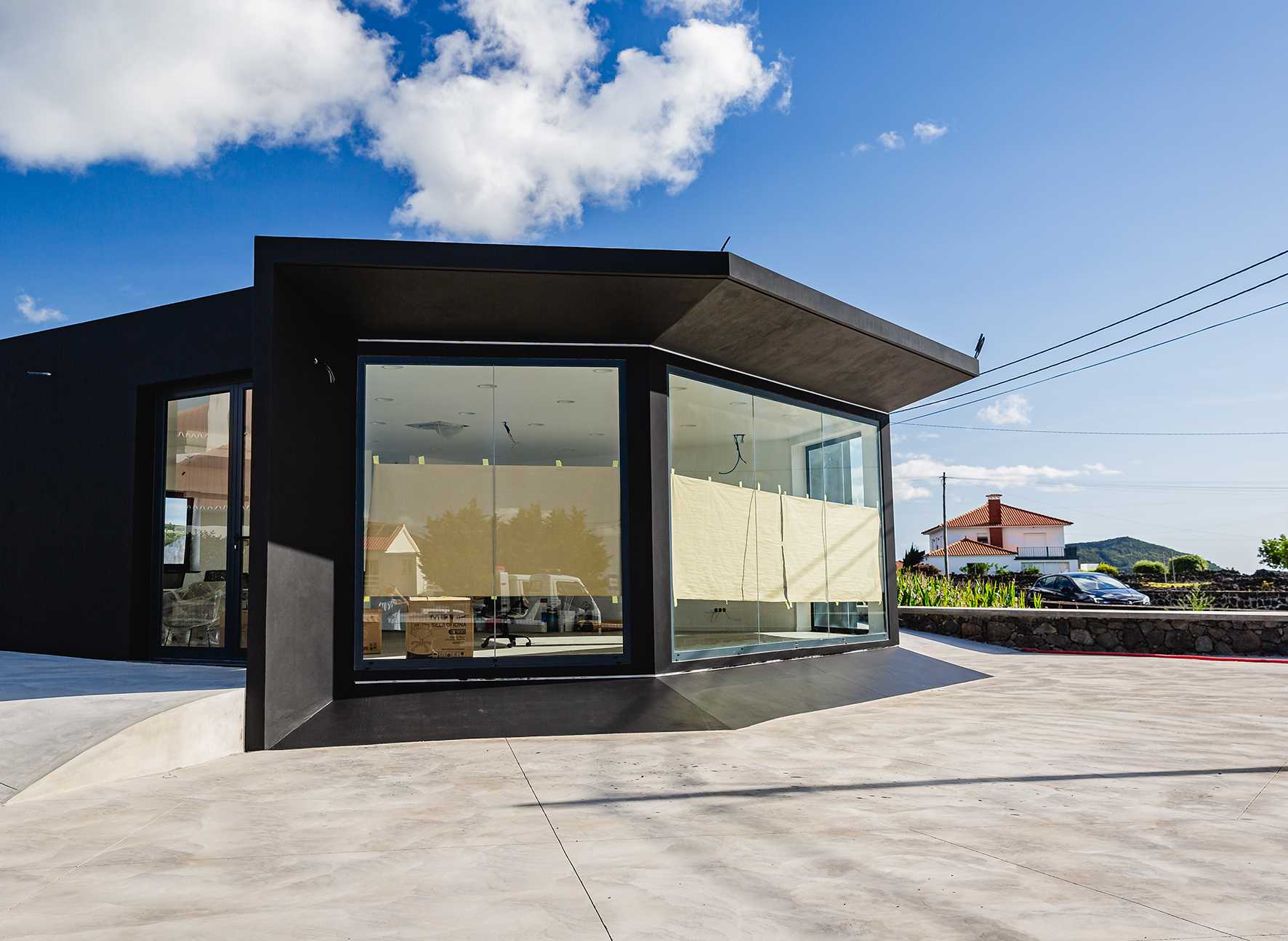 Stand Outeiro is located in Madalena. Situated in an area currently witnessing a surge in industrial development, particularly in the automotive and related services sectors, this project aims to seize the opportunity to become a prominent showcase for products, with a particular focus on cars.