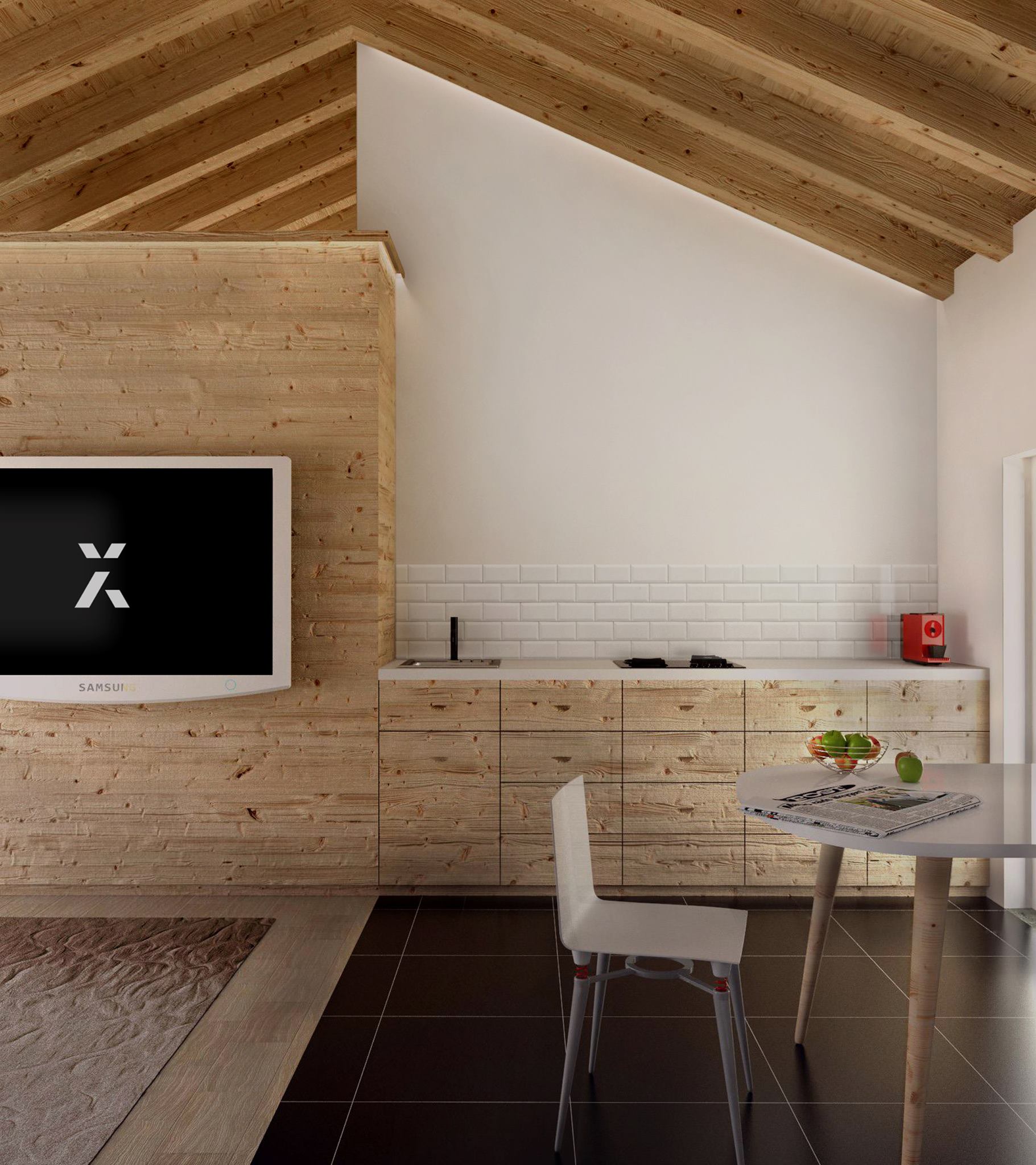 The Kitchen and Living Room, serving as the social heart of the house, grace the outer side of the property, adjacent to the access road. Meanwhile, the Bedroom and Bathroom are thoughtfully situated on the interior side, shielding the Bedroom from any potential noise disturbances from passing vehicles.