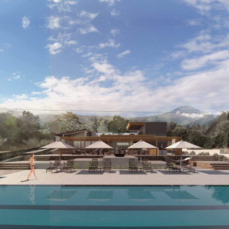 Taking into account the unique topography of the site, a deliberate decision was made to position the support building at a higher elevation. This strategic placement serves two primary purposes: firstly, it allows the facility to cater to the general public efficiently, and secondly, it offers campsite users the delightful opportunity to relish the surrounding spaces, complete with a rooftop bar and a refreshing swimming pool.